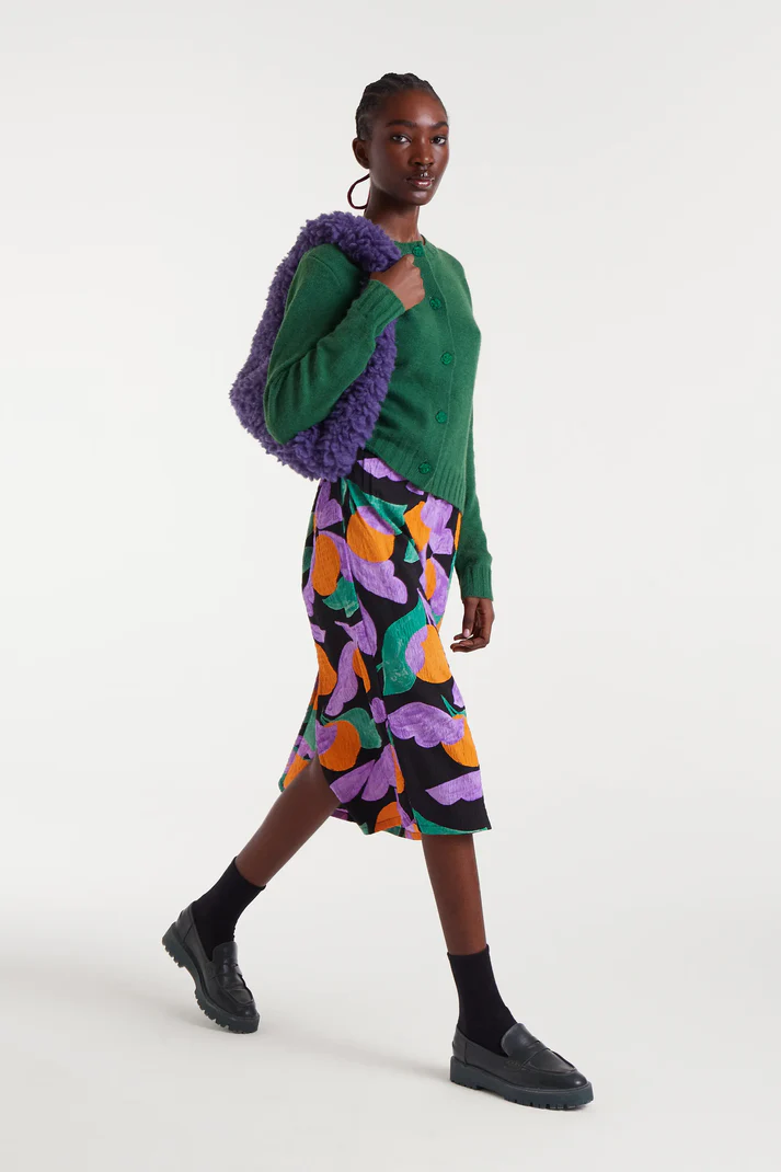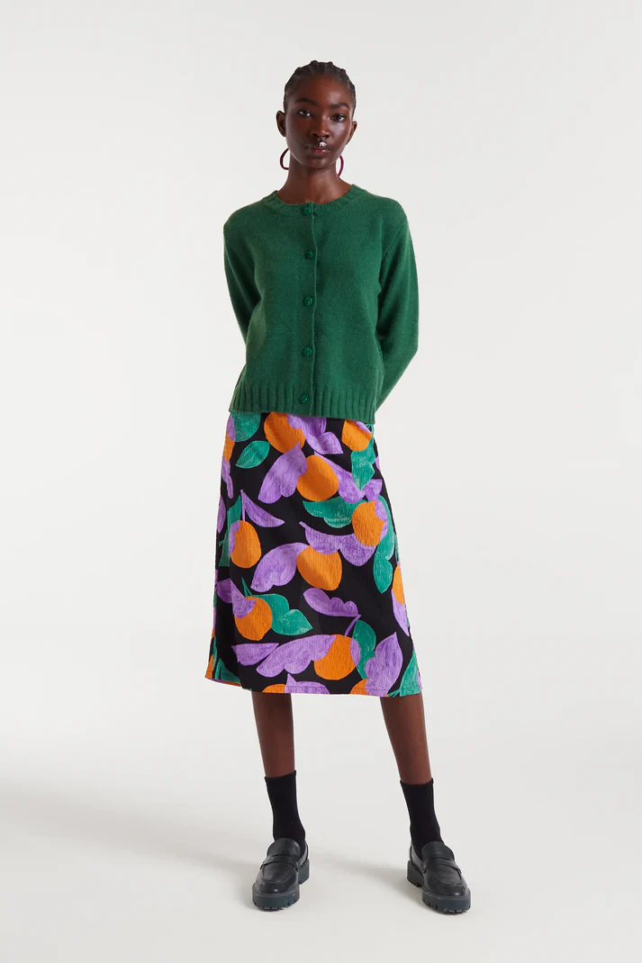 Falda midi de tejido seersucker con estampado Apricot.